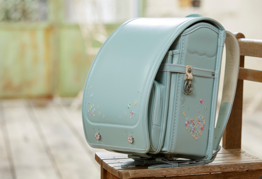 上品な刺繍とパステルカラーが魅力。機能はそのままに、蓋裏やサイドに施された繊細なデザインがお子様の心を掴みます。A4フラットファイル対応。重さ約1,280g。