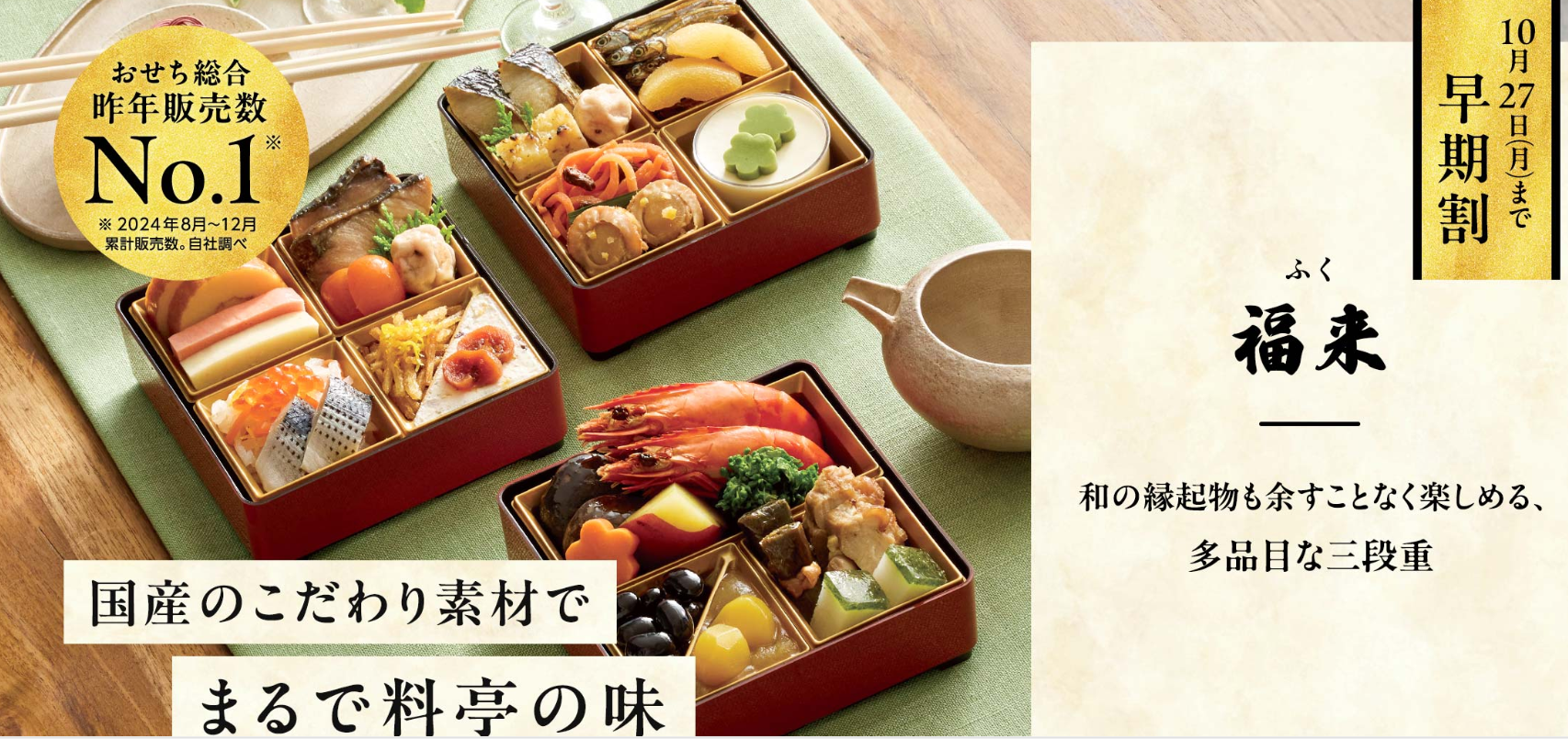 指定されたお届け日(大晦日が一般的)に、厳重な温度管理のもと、クール便でご自宅まで配送されます。**届いてすぐに食卓に出せる**のが最大の魅力です。