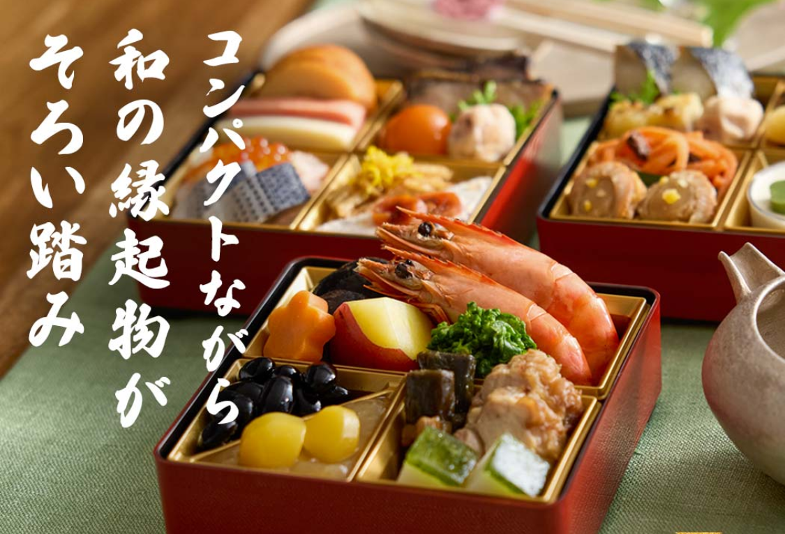 - **和洋折衷二段重『〇〇』(例:慶):** 伝統の和の味に加え、子供や若年層にも喜ばれるローストビーフなどの洋風料理も盛り込んだバランスの良さが人気。2~3人家族向け。