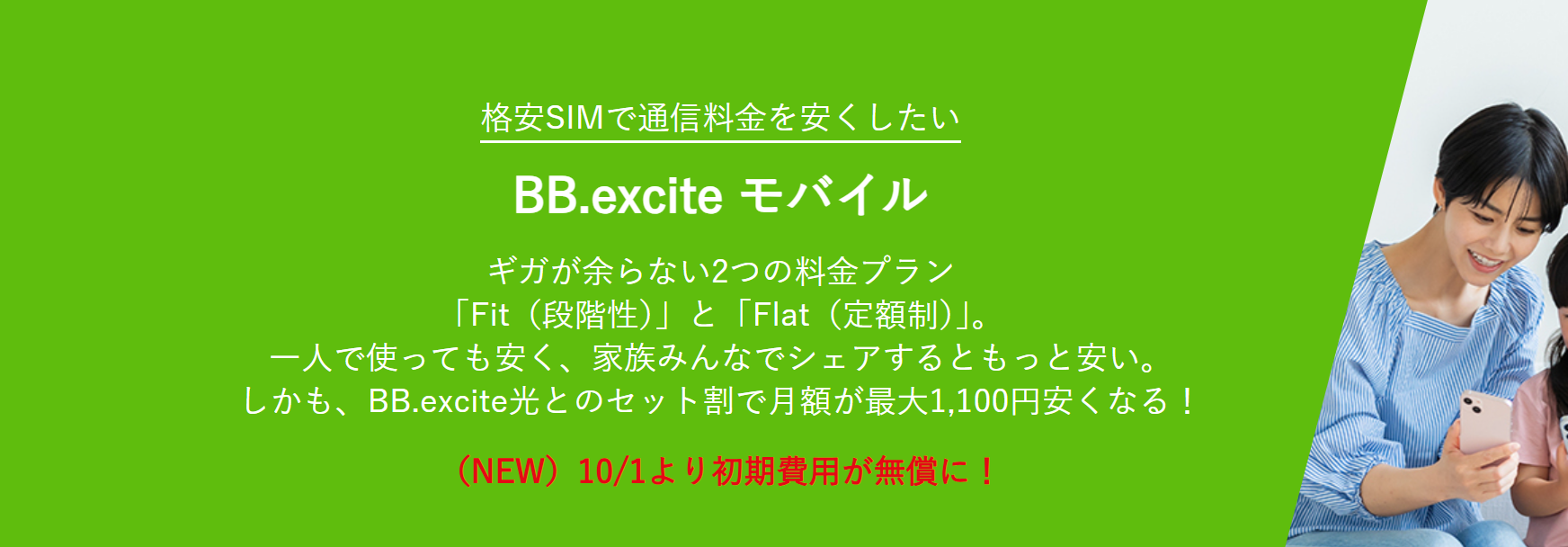 BB.exciteモバイルは、データ容量を効率よく使いたい人に向けた格安SIMサービスです。余ったデータを無駄にすることなく、利用状況に応じてプランを選べる柔軟さが特長。通信品質とコストのバランスを重視する人に最適です。