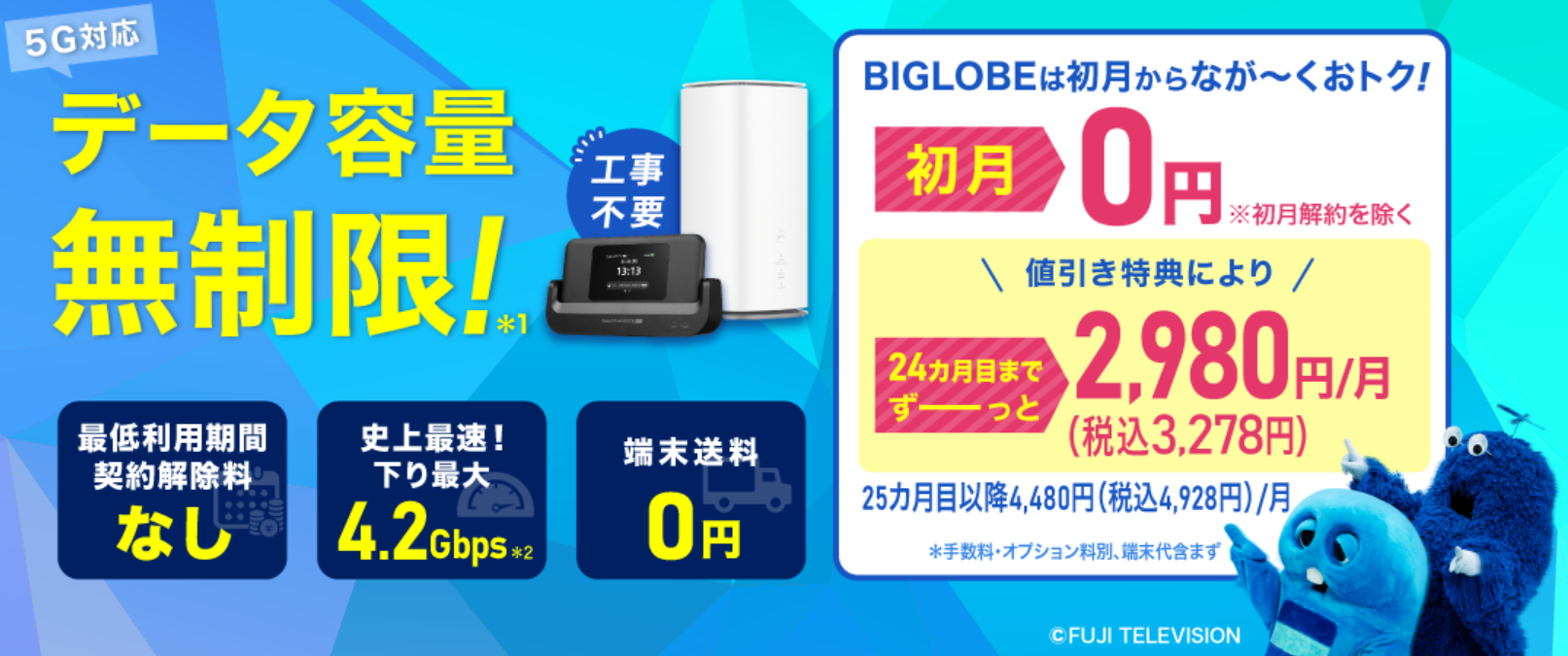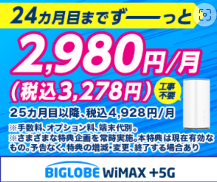 本記事はBIGLOBE WiMAX +5Gの販売促進を目的として作成されています。サービス内容や料金体系は、プロバイダーの都合により変更される可能性があります。