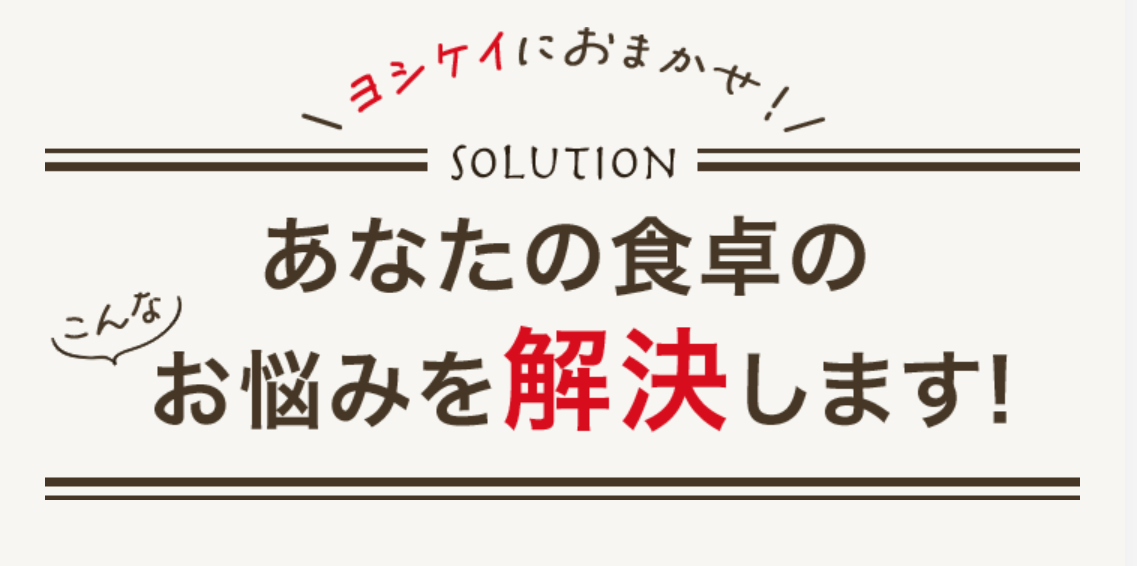 忙しい平日をサポートする、ヨシケイの選べるミールキット。4つのコースから自由に選べる5日分のお試しセットで、献立作りの負担をぐっと軽くします。
