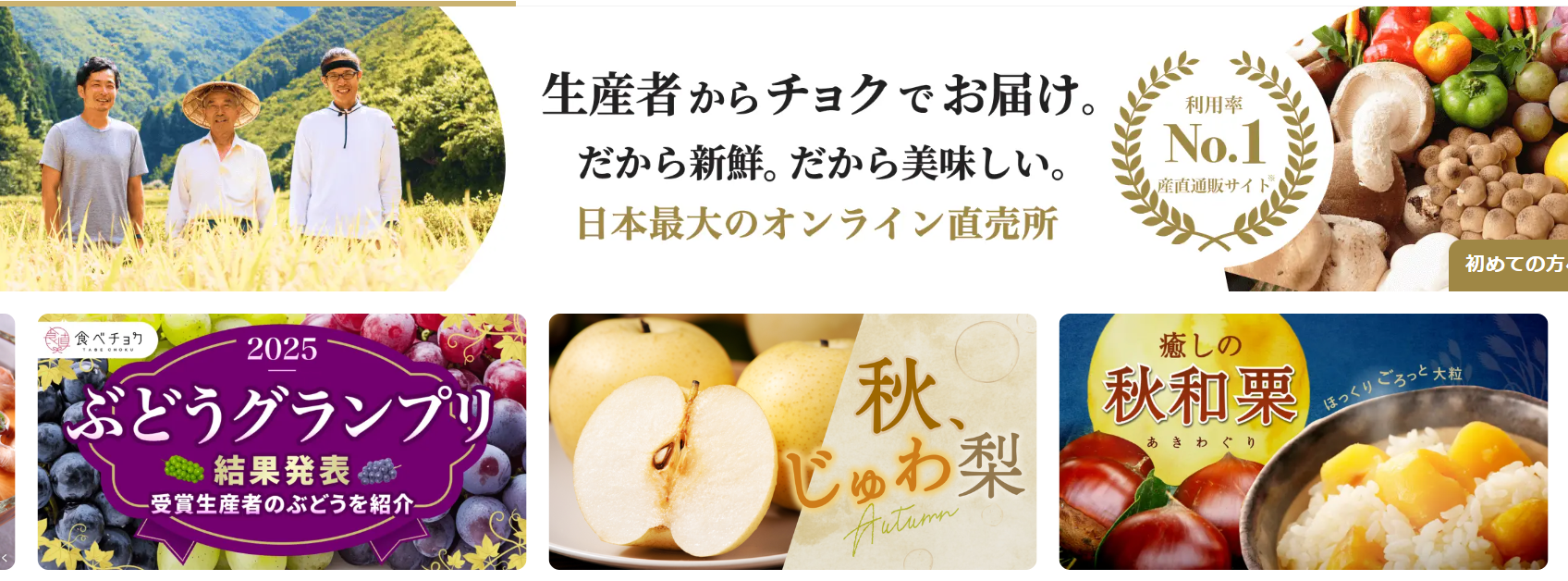 生産者と直接つながることで、鮮度・安心・個性をそのままお届けする食べチョク。旬の野菜や果物、加工品まで、“作り手の顔が見える”買い物をしたい人に最適です。