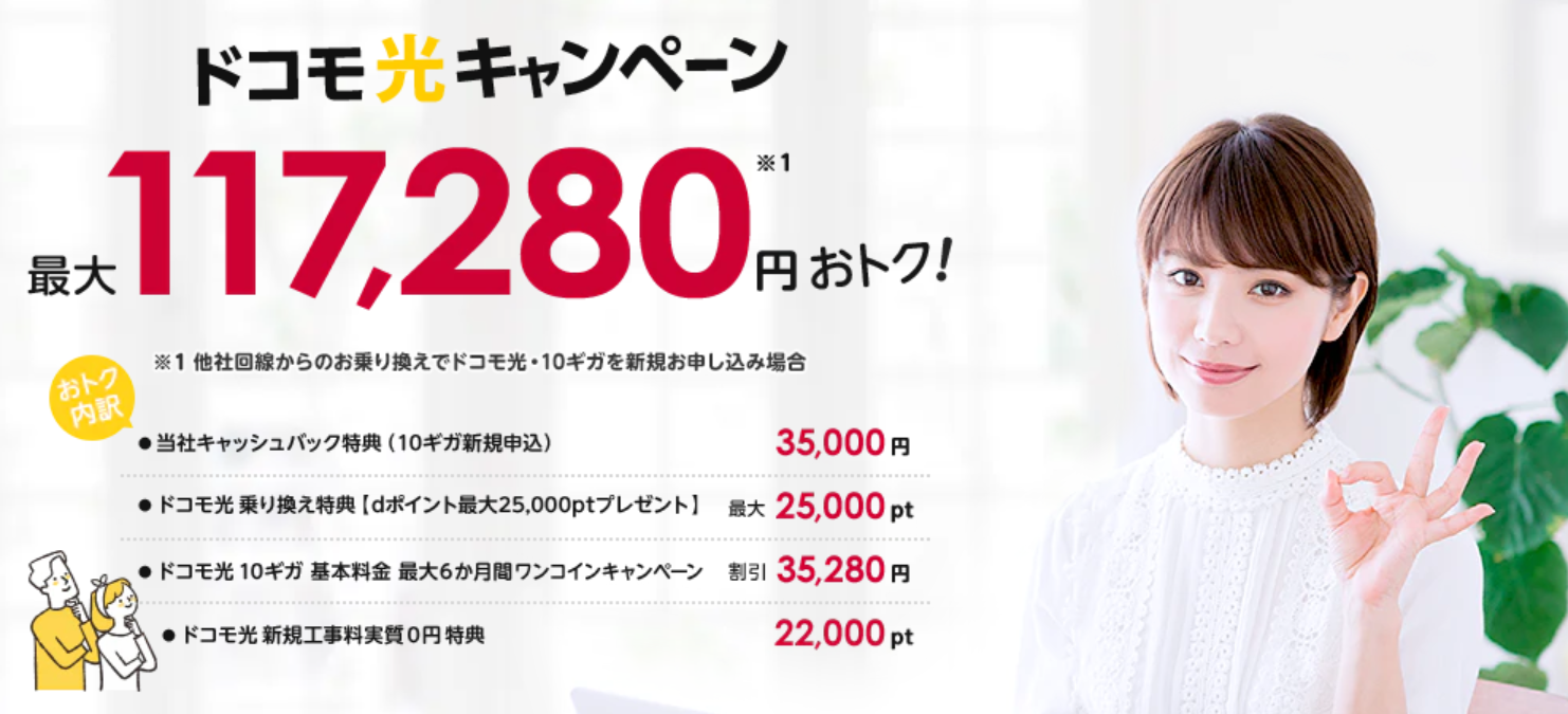 ドコモ光契約者限定のポイントキャンペーンも豊富。貯まったdポイントを旅行・買い物・食事などに使えます。 - 初期工事費無料キャンペーンも開催中